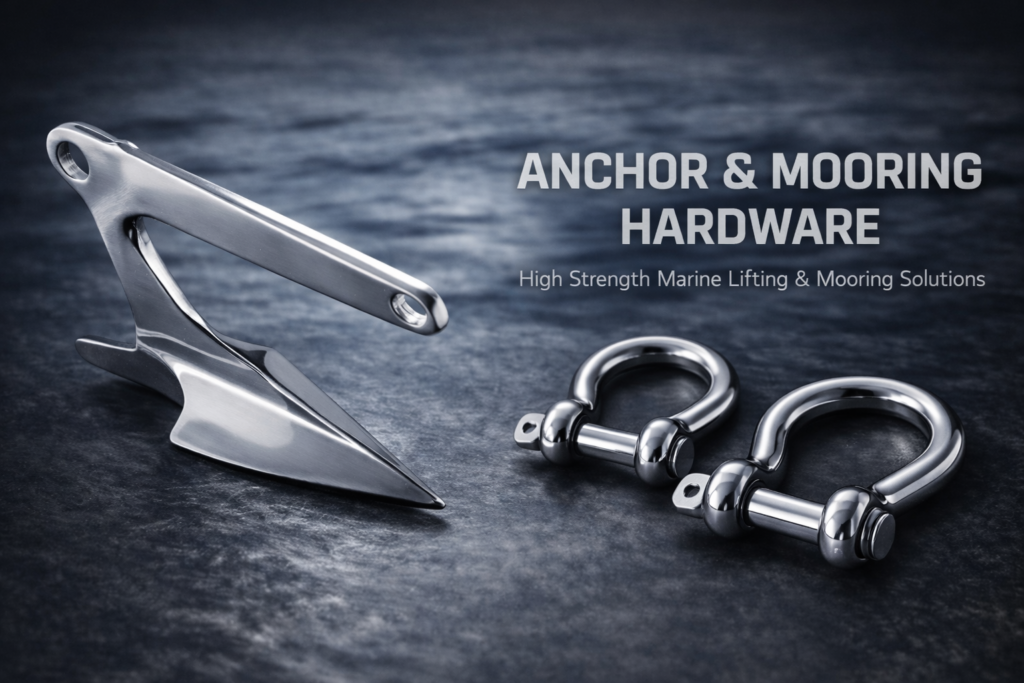We offer over 3,000+ stainless steel marine hardware products, including anchors, deck fittings, pad eyes, hinges, and custom components.